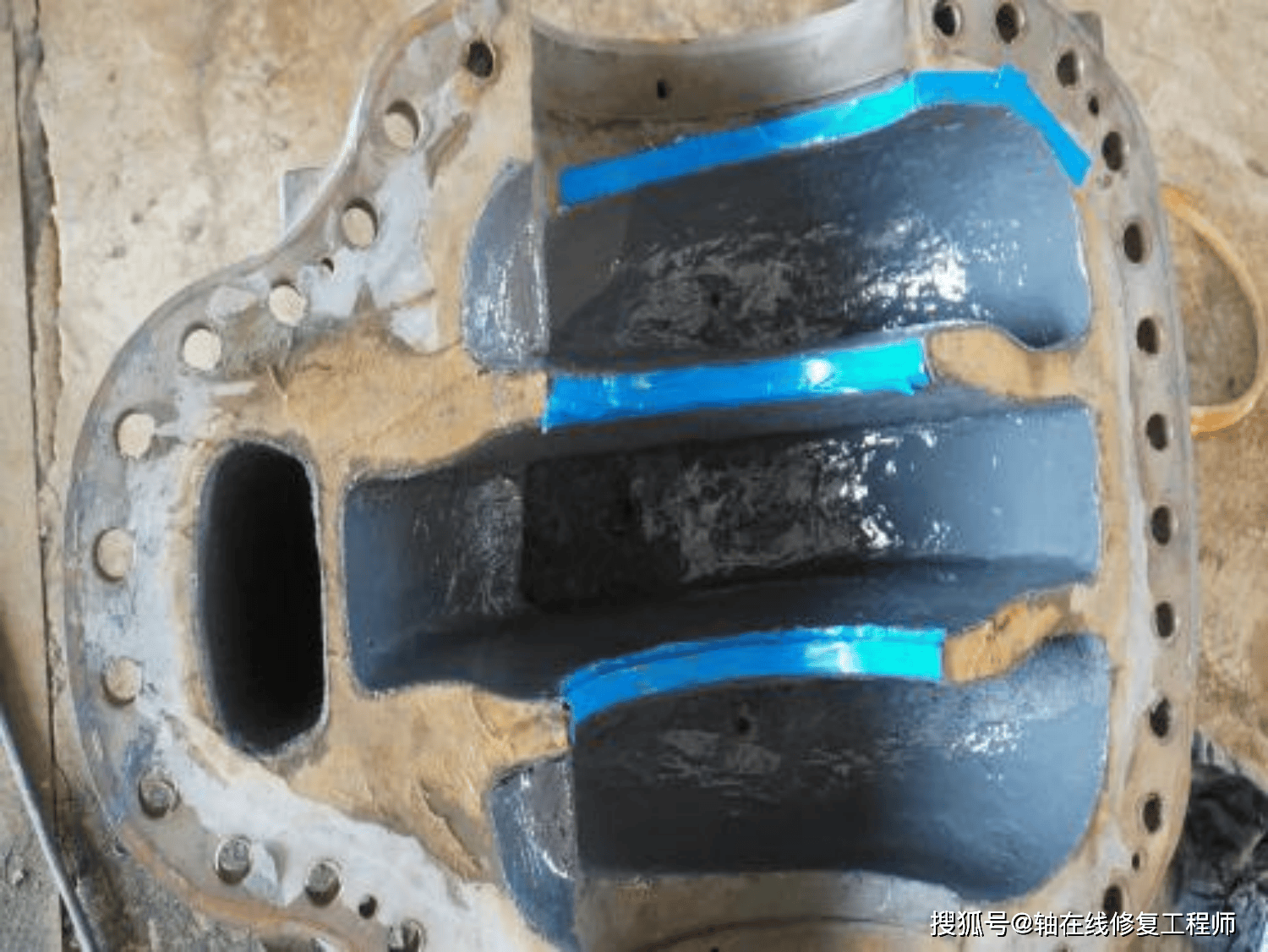 (8)按比例调索雷碳纳米聚合物面漆均匀涂覆在泵壳修复面,保证材料均匀覆盖;